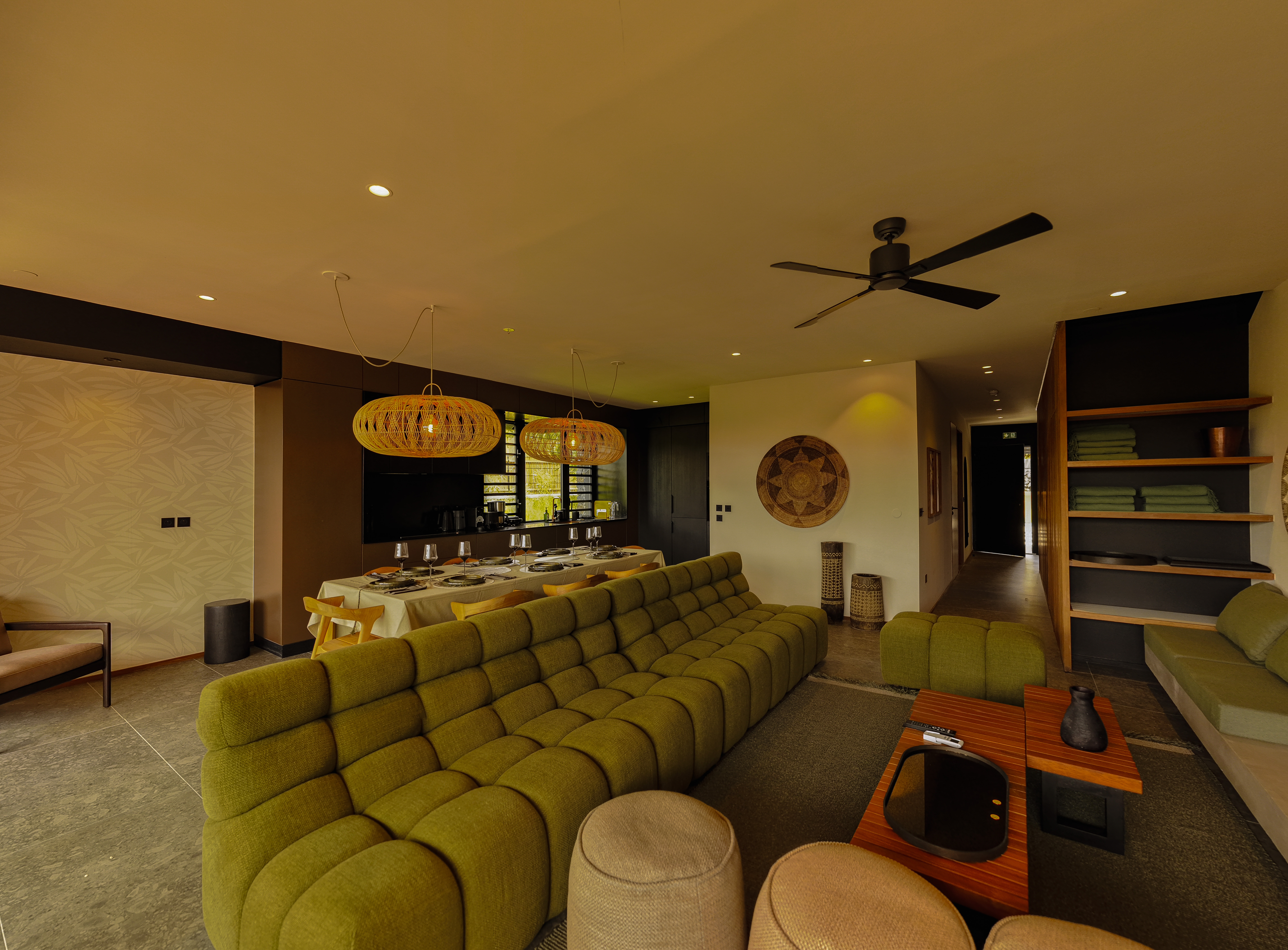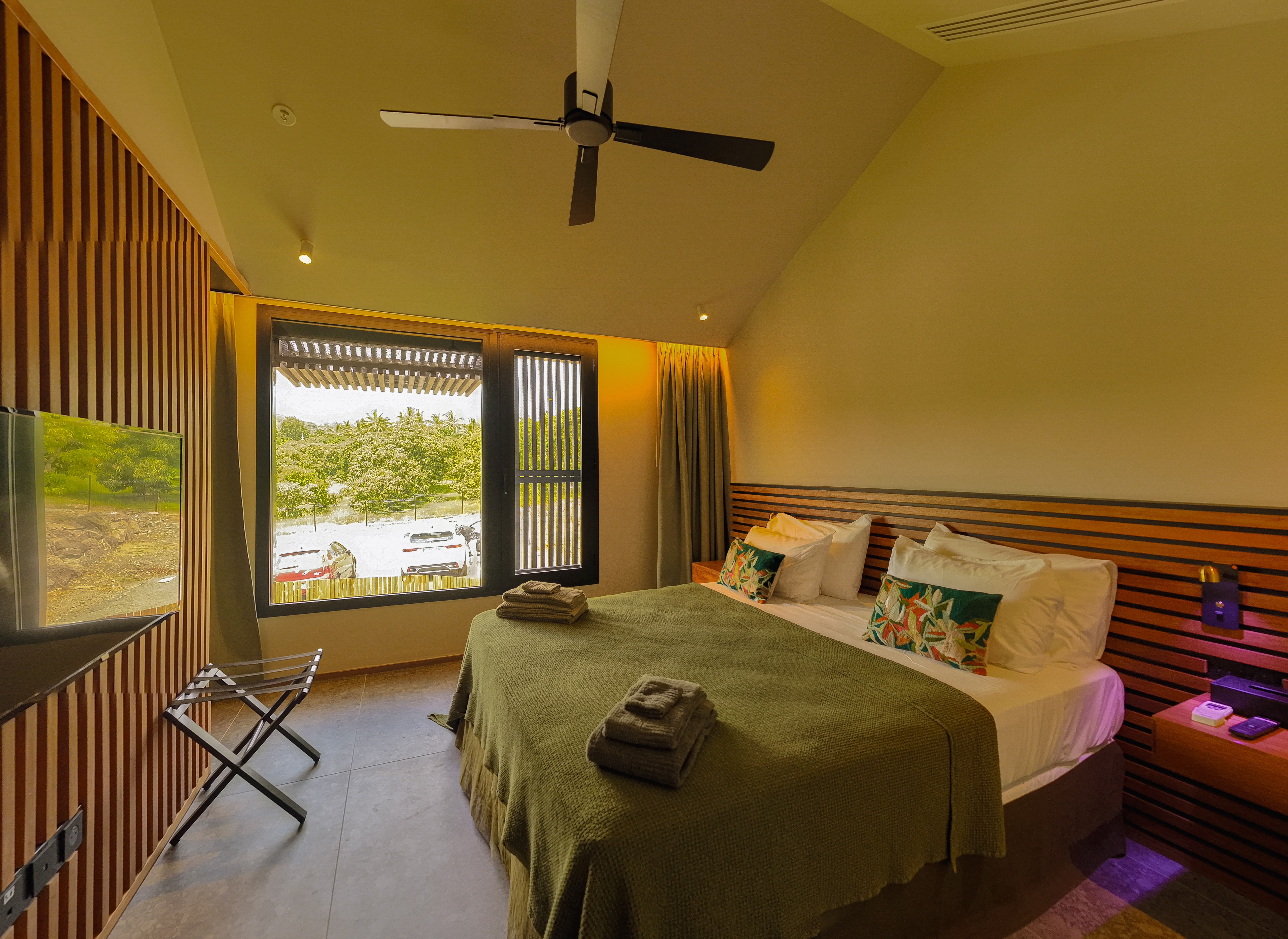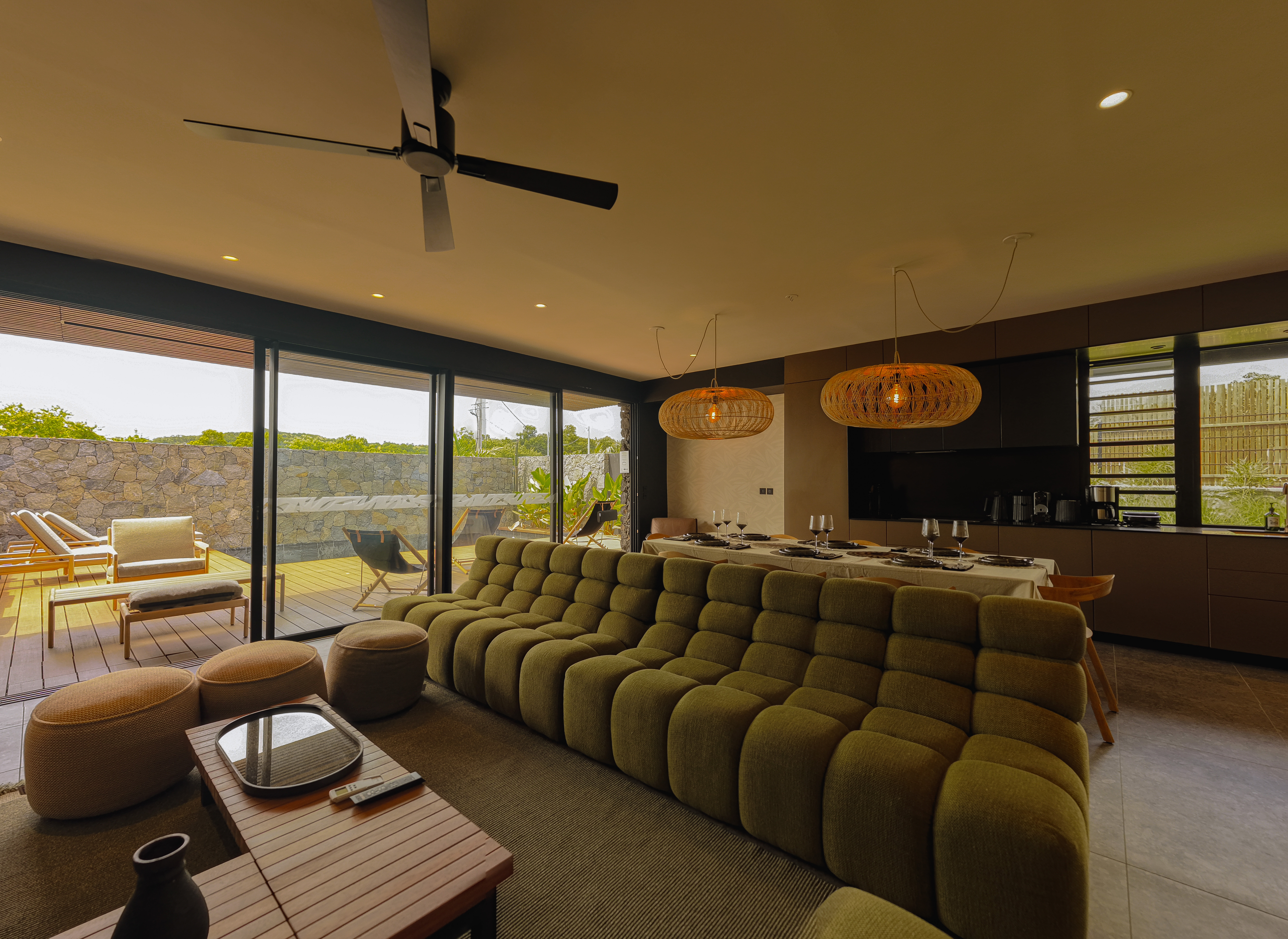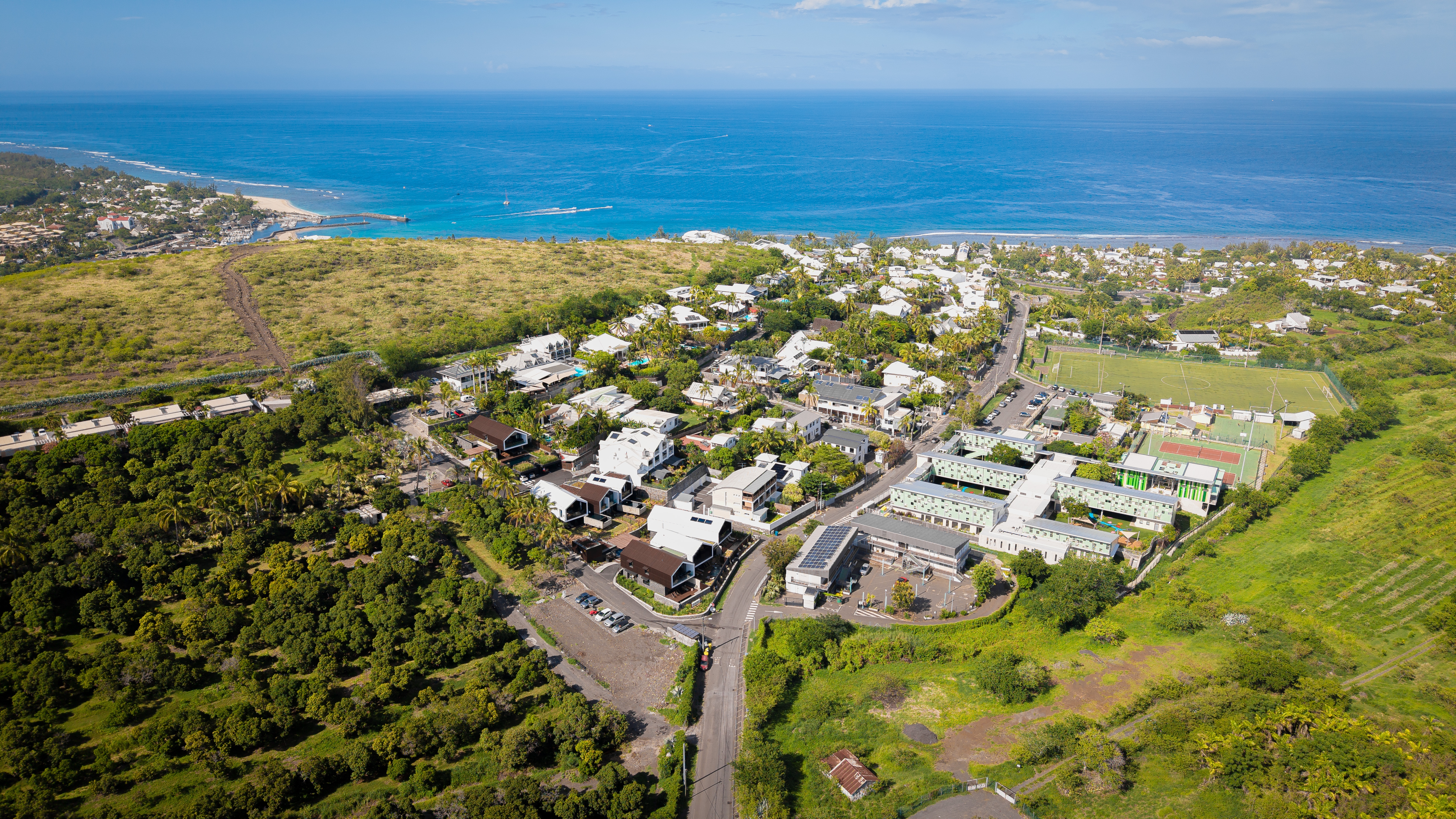 Large avenues lined with coconut trees, landscaped paths, relaxation areas, a natural massif allowing you to admire the sunset over Saint-Gilles-les-Bains, its port and its lights every evening via a private path… a rare place where nature, calm and luxury meet. natural, from the terrace and the swimming pool throughout the day.
